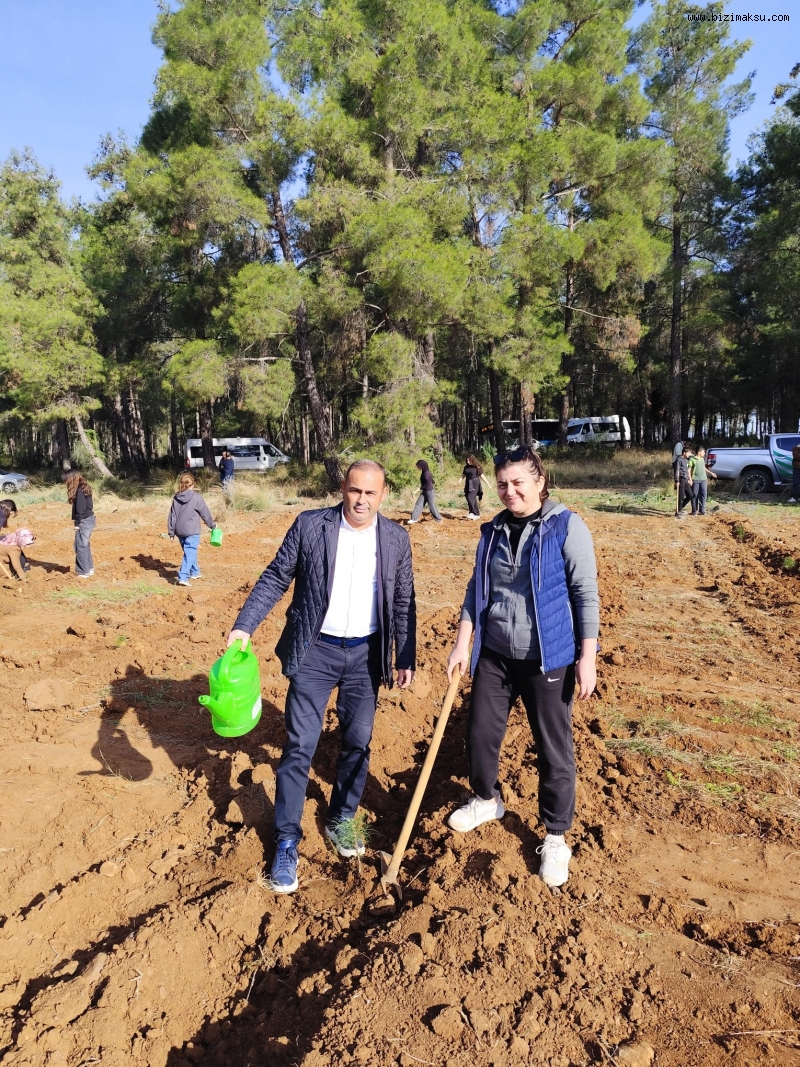 Etkinliğe katılan Antalya Orman İşletme Müdürlüğü yetkilileri, fidan dikiminin incelikleri ve doğayı korumanın önemi hakkında öğrencilere bilgi verdi.