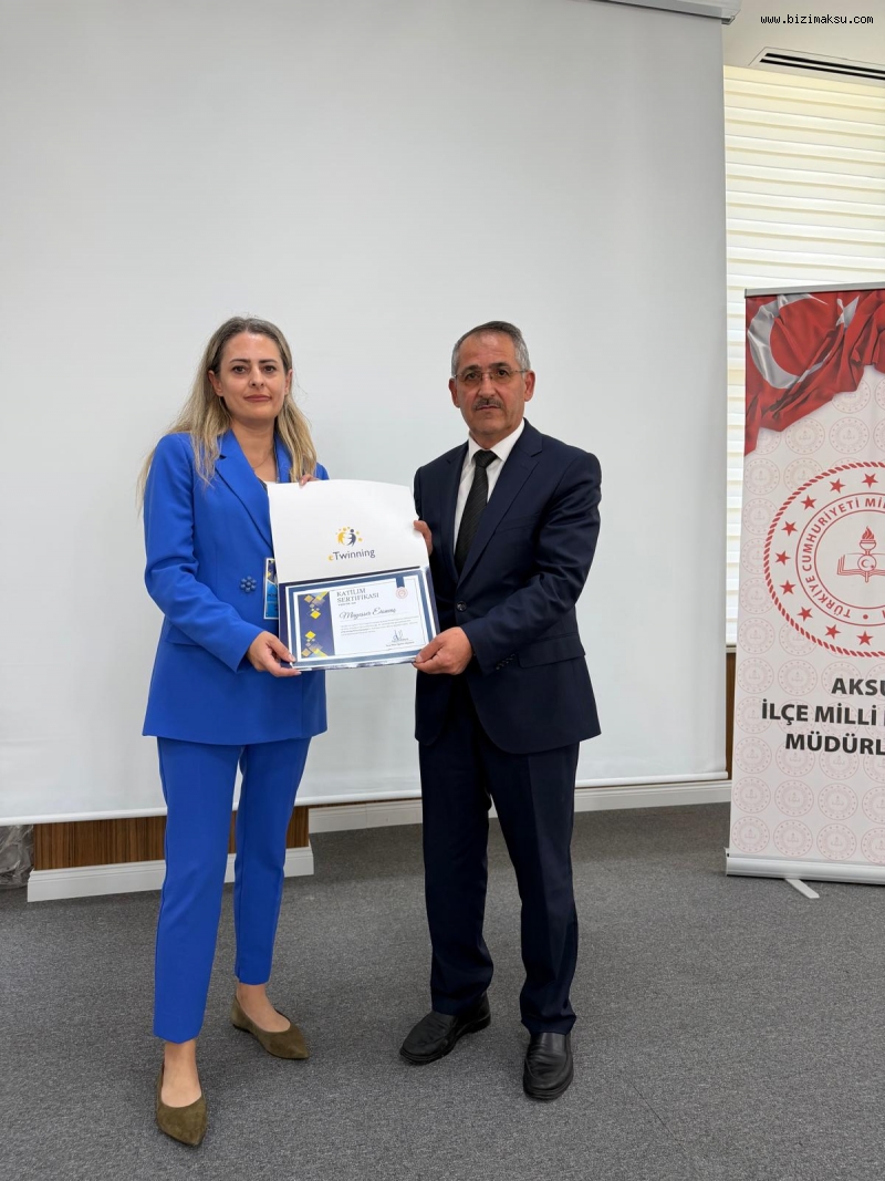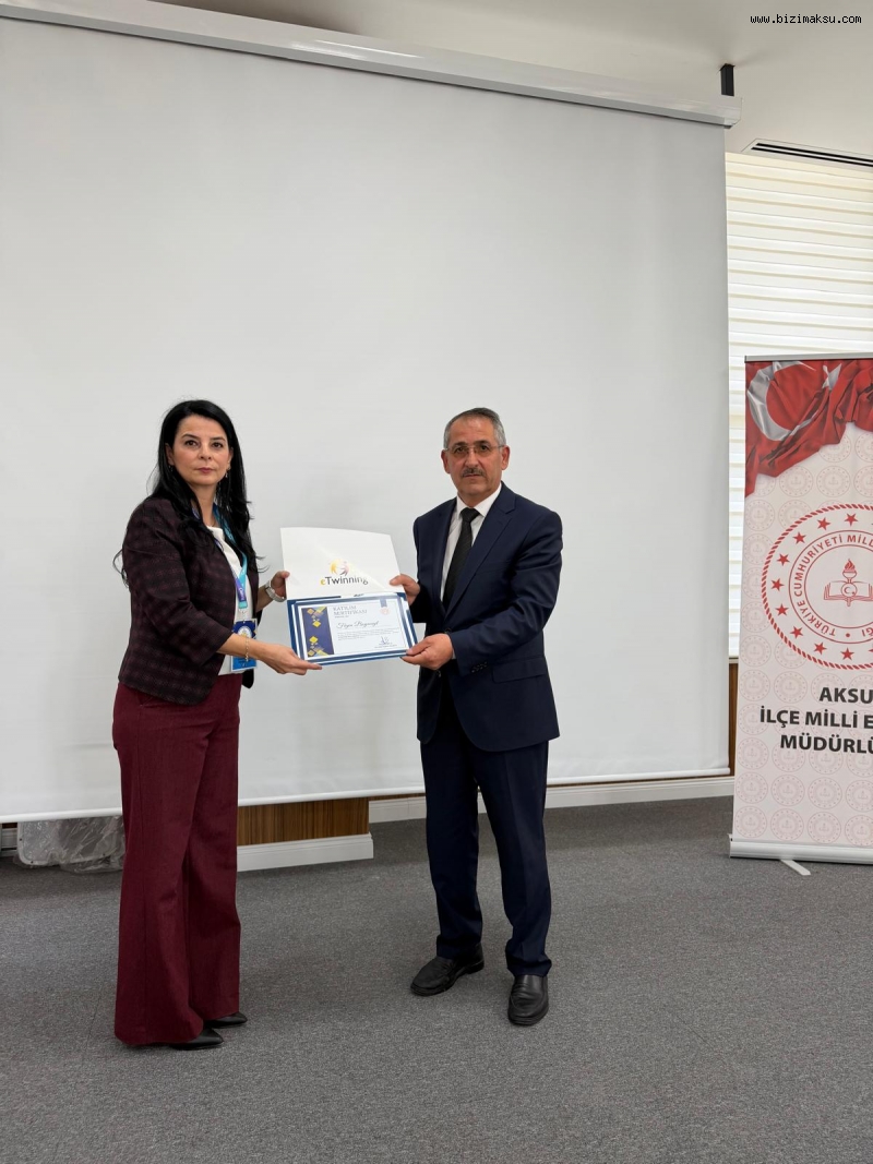 Aksu İlçe Millî Eğitim Müdürü Sayın Hasan Kürlü ise eTwinning çalışmalarının ilçede yaygınlaşmasından duyduğu memnuniyeti dile getirerek öğretmenlerin bu süreçte gösterdiği özverili çalışmalara teşekkür etti. Kürlü, eTwinning projelerinin Türkiye Yüzyılı Maarif Modeli hedefleriyle uyumlu biçimde öğrencilerin akademik, sosyal ve dijital gelişimlerine katkı sunduğunu ifade etti.