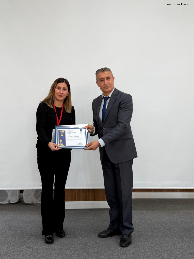 Programın sonunda çalıştaya katkı sunan Sayın Hüsniye Kuzu, Sayın Aysel Şener, Sayın Figen Boyacıgil ve Sayın Müyesser Ersavaş’a plaketleri Aksu Kaymakamı Sayın Ahmet Hikmet Şahin tarafından takdim edildi. Ayrıca çalıştaya katılan öğretmenlere katılım sertifikaları Aksu İlçe Millî Eğitim Müdürü Hasan Kürlü ve Şube Müdürleri tarafından verildi.