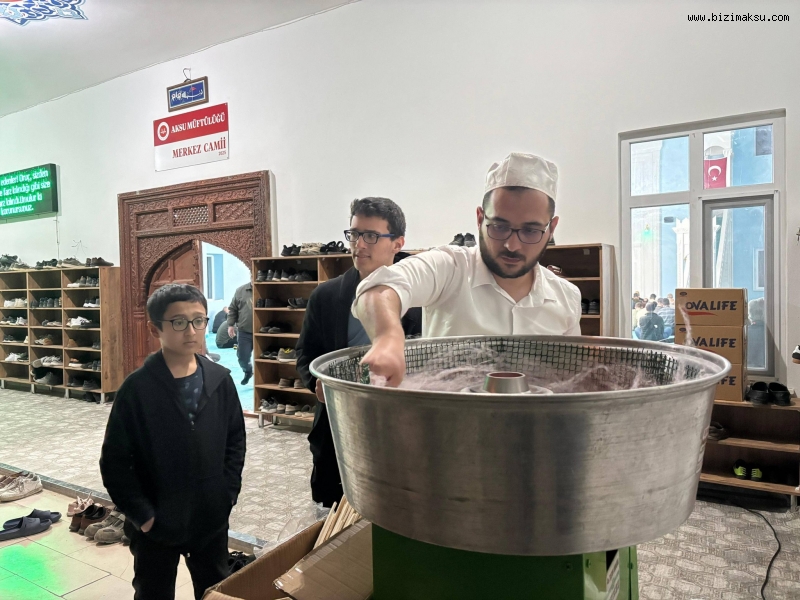 Din Hizmetleri Uzmanı Murat Çakır tarafından Merkez Camiinde çocuklara pamuk şeker ikram edildi.
