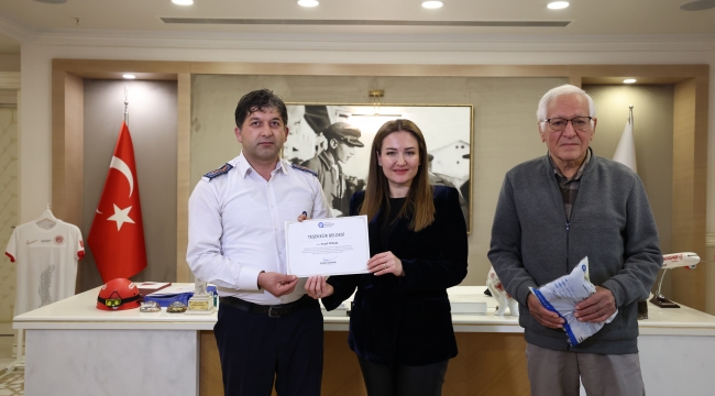 Başkan Vekili Özdemir, gösterdiği örnek davranış nedeniyle şoför Yusuf Yevlal’a teşekkür belgesi takdim ederek kendisini tebrik etti. Özdemir, “Yusuf Bey’e belediyemiz adına çok teşekkür ediyorum. Sadece görev bilinciyle değil, ahlaki bilinçle de hareket ettiğimizin çok büyük bir göstergesi. Tavrı bizleri çok mutlu etti. Bunun aslında bir görev olduğunu biliyoruz. Ama bu sorumluluk, bu ahlaki değeri taşıdığı için de kurumumuz adına kendisine de çok teşekkür ediyorum” dedi.