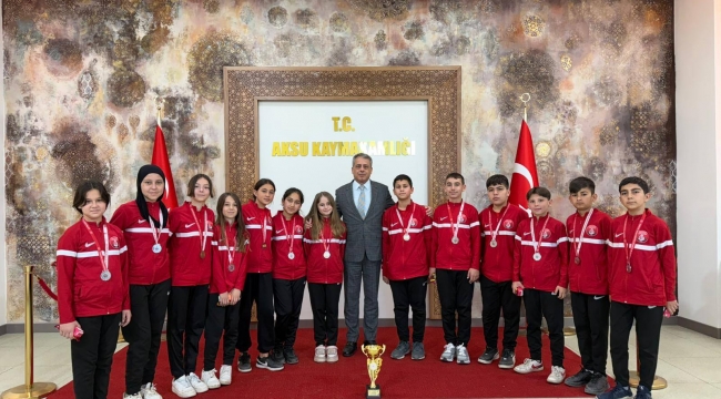 Aksu’da gerçekleştirilen Antalya Halk Oyunları İl Birinciliği yarışmalarında il ikincisi olan Karaöz Ortaokulu öğrencileri, kazandıkları kupayla birlikte Ahmet Hikmet Şahin’i makamında ziyaret etti.