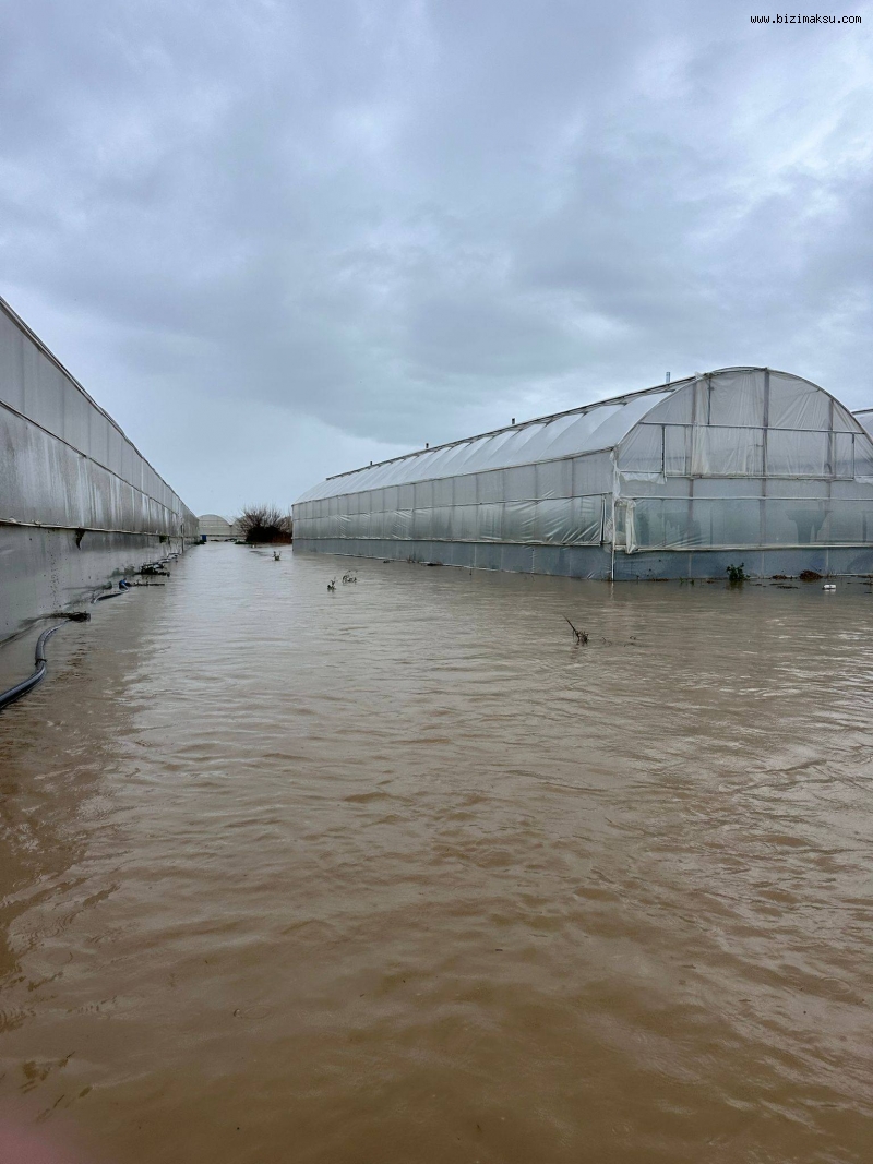 Aksu’ya bağlı bazı mahallelerde derelerin taşması sonucu çok sayıda sera ve tarım arazisi sular altında kaldı. Örtü altı üretim yapan çiftçiler, ürünlerinin büyük bölümünü kaybettiklerini belirtti. Su baskınları nedeniyle seralarda ciddi maddi hasar meydana gelirken, tarımsal altyapı da zarar gördü.