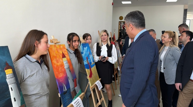 Sergide yer alan eserler, öğrencilerin hayal dünyalarını ve sanatsal bakış açılarını yansıtırken; öğrenciler hazırladıkları çalışmaları öğretmenleri eşliğinde Kaymakam Şahin’e sunma fırsatı buldu.