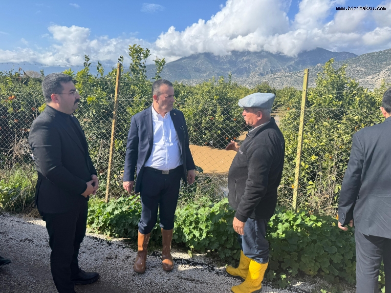 Kumluca ilçesine bağlı Mavikent, Kum Mahallesi, Hızırkahya ve Salur mahallelerinde gerçekleştirilen ziyaretlerde; Baysu ve Salur Çayı’nın taşması sonucu evleri su altında kalan vatandaşlar ile zarar gören çiftçilerle bir araya gelindi. Bölgedeki muhtarlar ve ziraat mühendislerinin de yer aldığı incelemelerde, tarım alanlarında oluşan hasar detaylı şekilde değerlendirildi.